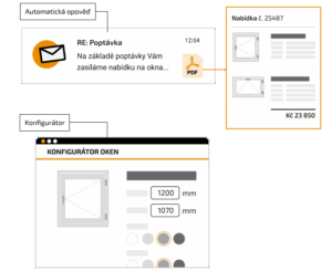 Za pomoci AI zpracujeme poptávku. Jako odpověď můžeme zákazníkovi poslat předvyplněný konfigurátor, nebo nabídku v PDF e-mailem. Můžeme vykrýt až 90% vašich poptávek.