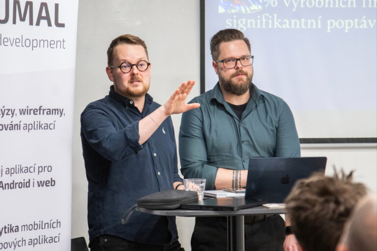 Úvodního slova se chopil Vladislav Skoumal. Hned na začátku se mu povedlo zkomolit jméno Martin Balajka z Apertia – ERP a CRM systémy s AI agenty.
